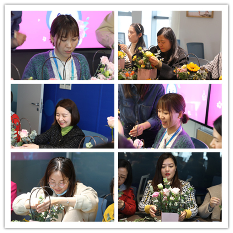 “待到山花烂漫时,她在丛中笑”,步入精心布置的会议室内,芬芳拂面,花团锦簇,形色各异,温柔了心境,也温柔了纤纤细指,褪下平日的繁忙,女士们静至一角,时而折枝,时而塑形,高高低低,深深浅浅,有岁月的感触,也有时光的颜色,手中的是属于自己的独一无二的美好艺术——插花的原趣,也就变得生意盎然,整个会议室已不再如往日的单调,而如这三月的鲜花,如各自手上的花篮,有姿有态,摇曳生辉,女神们塑造着属于自己的美,也塑造着属于自己的美好人生和幸福生活!
