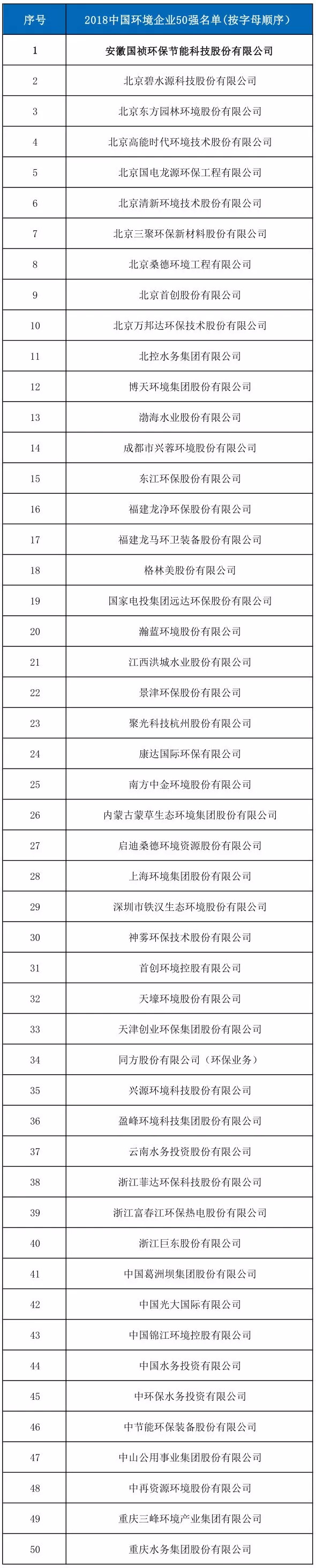 榜上有名——国祯环保荣获“中国环境企业50强”